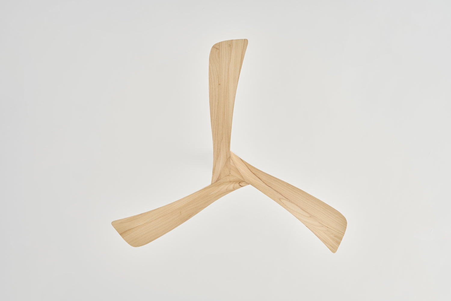 Forester’s natural wood blades are expertly crafted to flow seamlessly, with no visible hardware from below, emphasizing the striking triangular shape where the blades meet, creating a stunning and minimalist design.